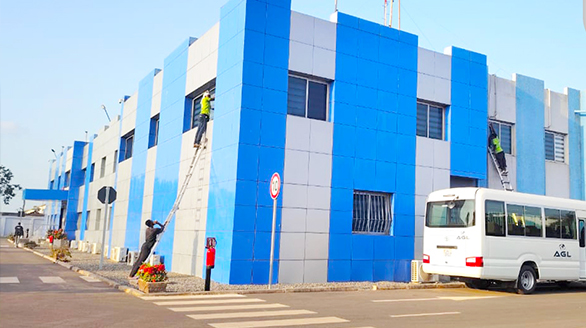 PROJET AGL (Africa Global Logistics) Nettoyage haute pression de la façade pour un rendu net et professionnel, valorisant l’image de l’entreprise. Avant les travaux Après les travaux